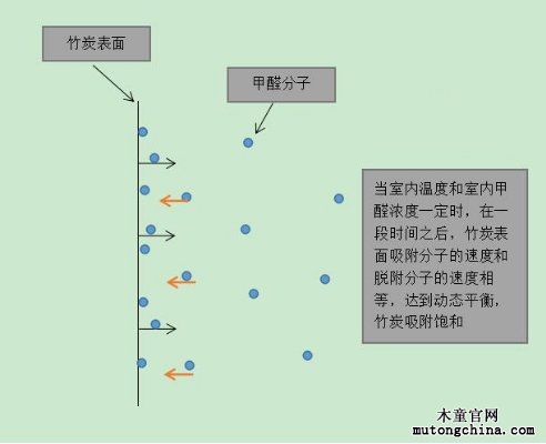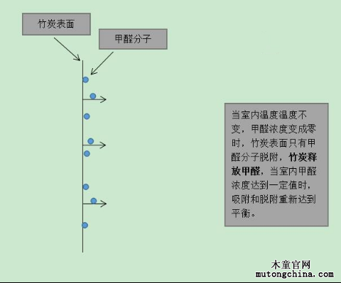 當環境中甲醛的濃度降低時,竹炭表面的吸附和脫附平衡就會被打破,吸附速度減小,飽和的活性炭就會釋放甲醛。